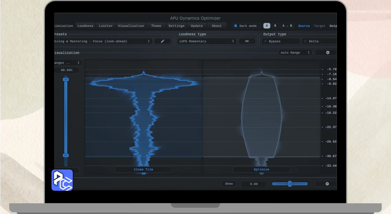 APU Software APU Dynamics Optimizer is a Potent Tool that Balances Audio Volume, Which Makes It perfect For podcasts And Music. It analyzes your audio file and shows how loud different parts are using a graph called a histogram. Then, it adjusts the Sound so that quiet parts become louder and loud parts become softer, ensuring a clear and professional Sound.