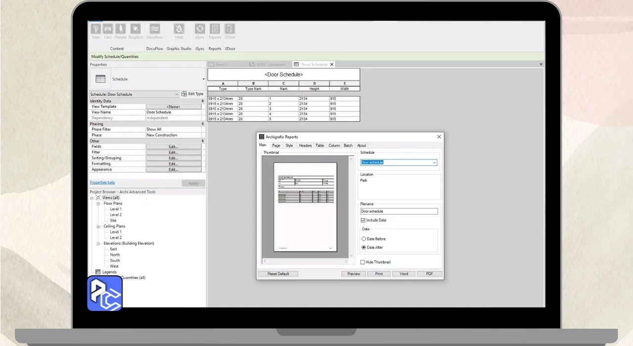 One standout Feature is its Ability to Organize information into clear, Attractive tables. As result, reports have an updated appearance and customers of the teams can locate essential data with respect to wall types, sizes, and other resources more quickly. You may also like to download: Archigrafix XDoor Door Swing Tool.