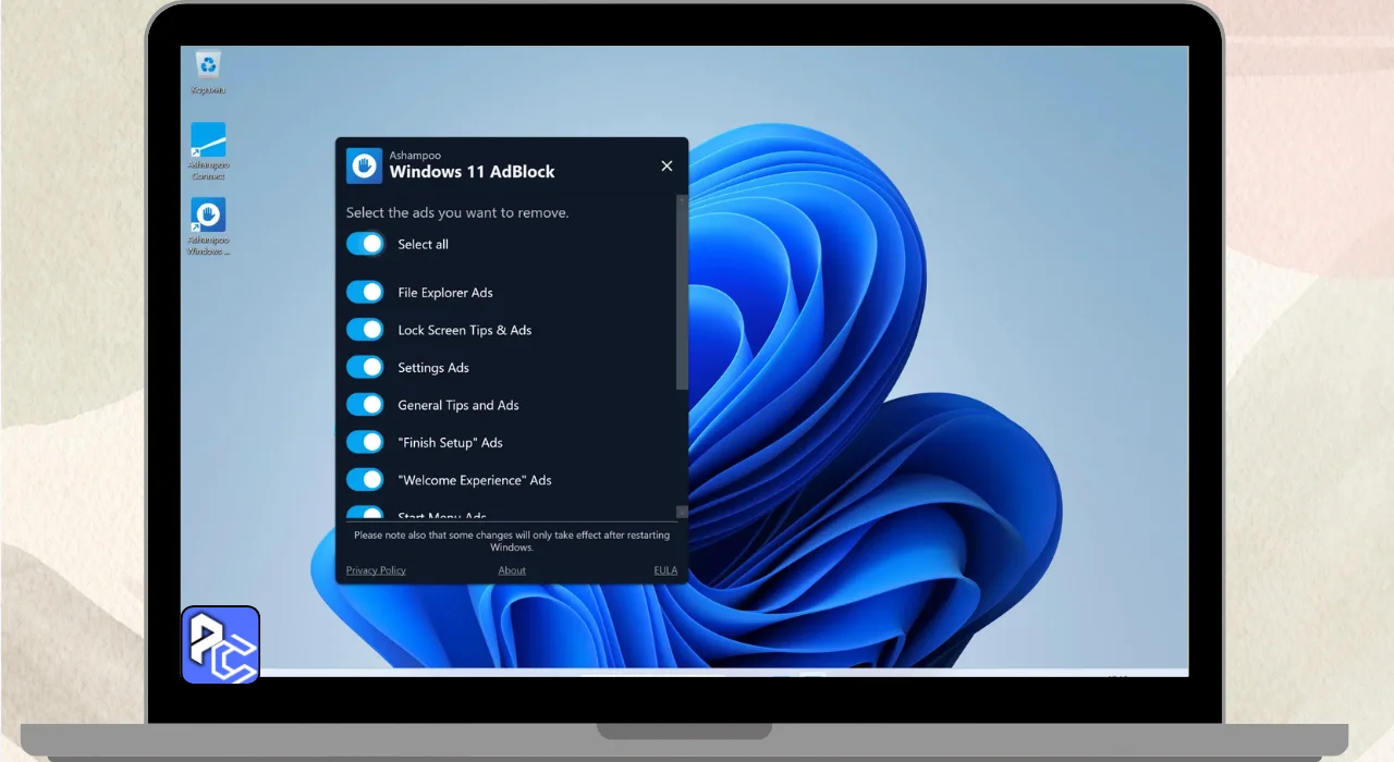 Ashampoo Windows 11 AdBlock is a tool that helps stop annoying ads on your computer. Once installed through Ashampoo Connect, it provides an easy-to-use interface with sliders to control where ads appear, such as in File Explorer or on the lock screen.