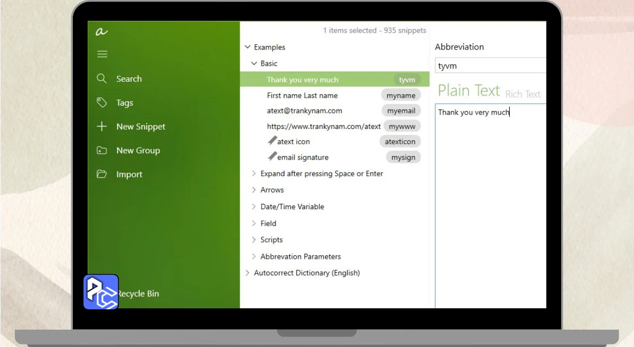 Setting up aText is simple. You start by creating groups to organize your shortcuts, then add snippets these are the actual shortcuts. You can edit Existing ones or create new Ones as Needed. aText is very Adaptive because it can Interact with an Assortment of Software, Notably Emails and docs. You may also like to download: TechSmith Camtasia.
