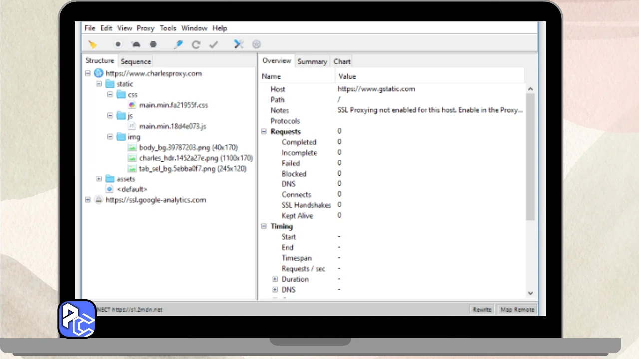 Charles is a Wonderful Tool For Monitoring Internet Traffic on a Desktop or a Laptop. It provides Detailed reports and Insights into the Data Moving to and from your Machine. you can see information like website addresses, the security of your connections, and the speed of website loading.
