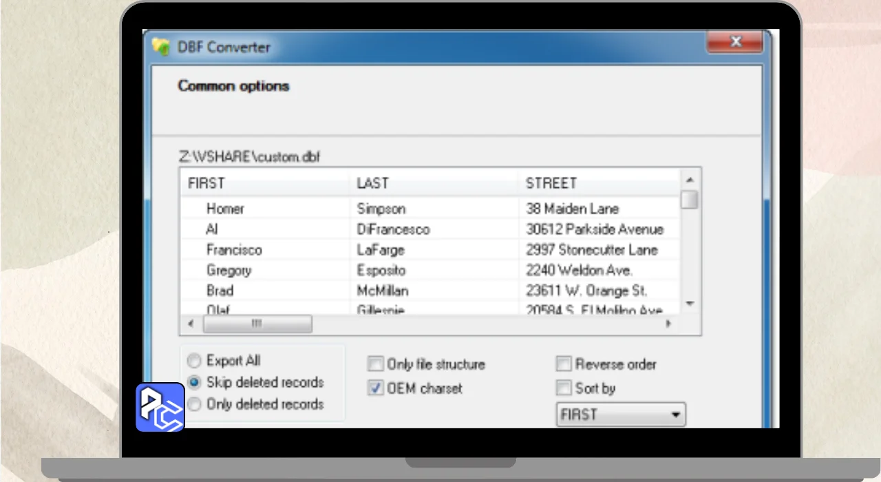 - Converts DBF files to multiple formats like XLS, SQL, and XML.