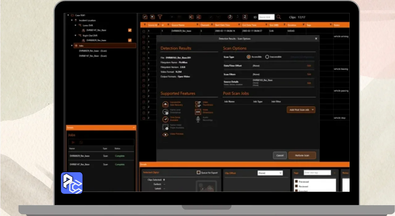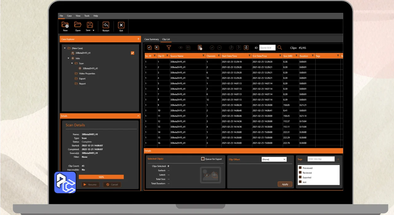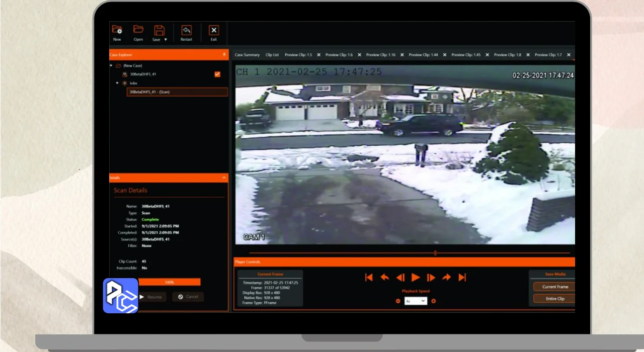 - Quickly recovers deleted video footage from DVRs.