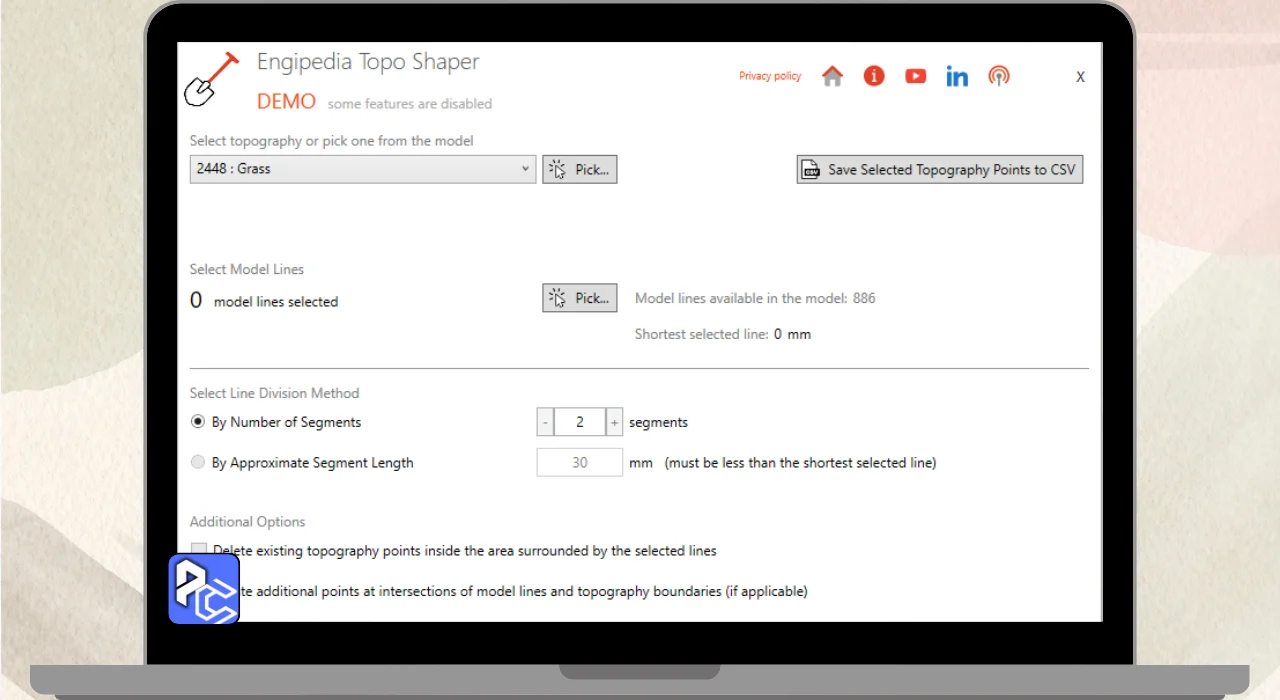 Engipedia Topo Shaper is a tool that helps you easily modify the shape of the land in Revit designs. It allows you to add, Remove, or adjust points on the terrain using Model lines, making it easier to Create hills, Valleys, and flat Areas. You can try the tool for free with a demo that lets you divide lines into two parts.