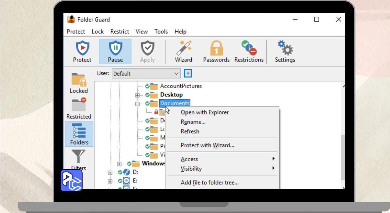 Folder Guard could be a computer program program that makes a difference keep your records and organizers secure on your computer. It lets you select particular Folder to lock or cover up, so as it were you’ll be able get to them. With its simple dashboard and step-by-step guide, even beginners can easily protect their important data without needing much technical skill.