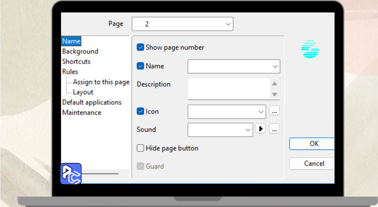 - Desktop customization options for backgrounds, layouts, and program arrangement.