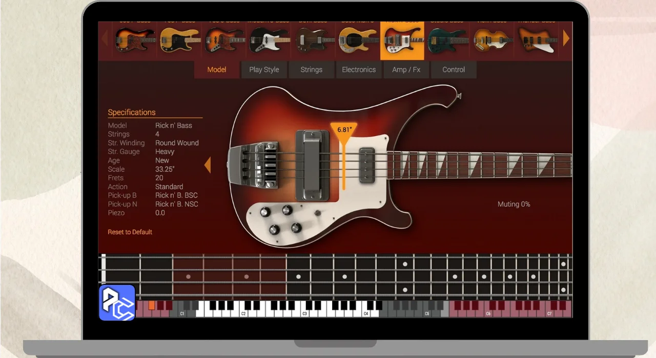 - Realistic bass sounds: Models every aspect of how a bass guitar is played.
