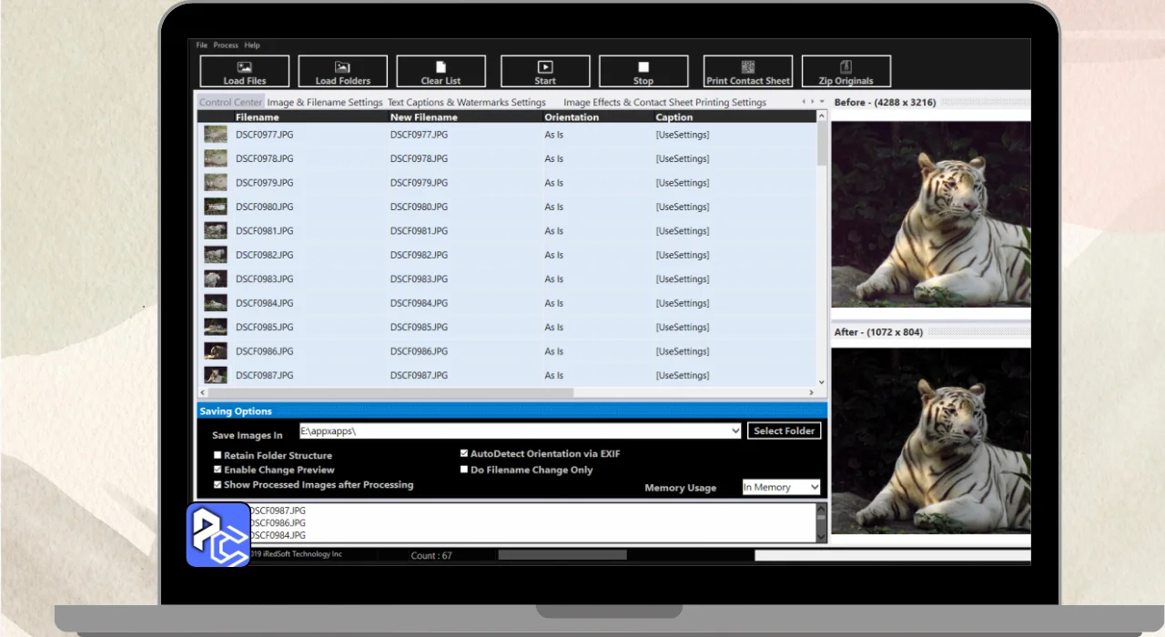 To use JBatch, simply load your images, choose the edits you want, and Click ‘Start.’ The program takes care of everything, making it perfect for anyone looking to manage their photos easily and efficiently.