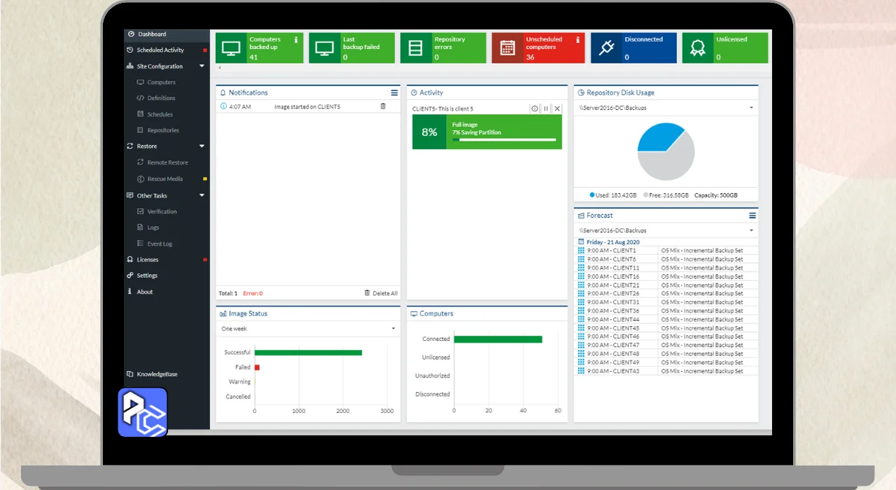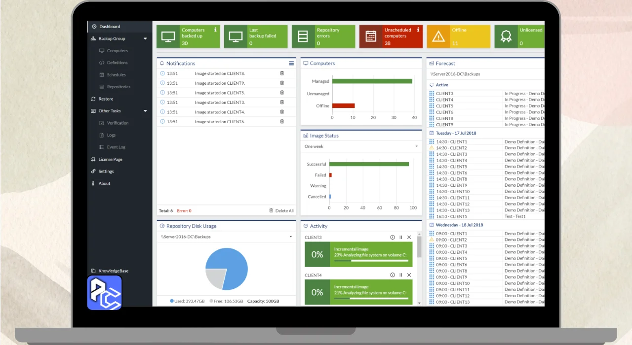 - Wake on LAN: Wake up offline computers to ensure they receive backups.