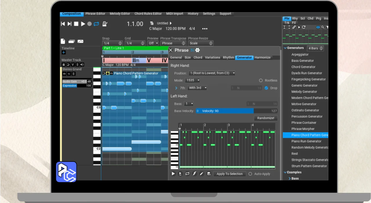 - Phrase-Based Composition: Easily combine small musical pieces to create unique songs.