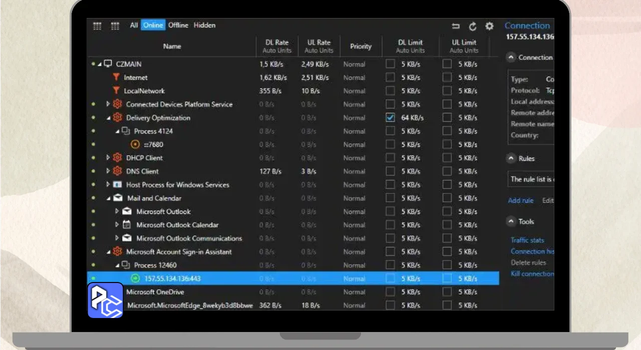 NetLimiter may be a Instrument That Makes a difference you Oversee Your Web Utilization. It Shows you which Apps are using your internet and how much they’re using. This helps you see if any app is Slowing down your connection.