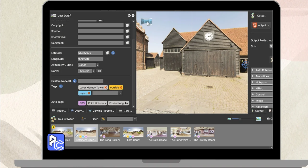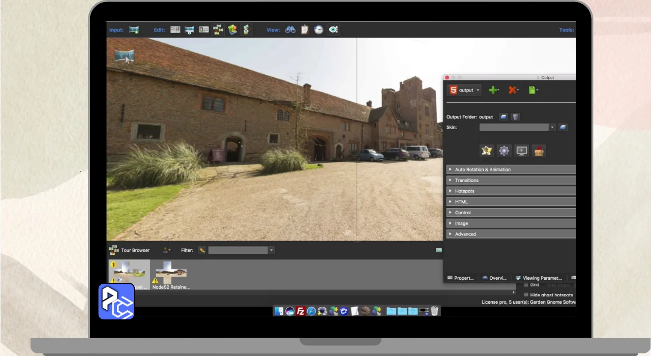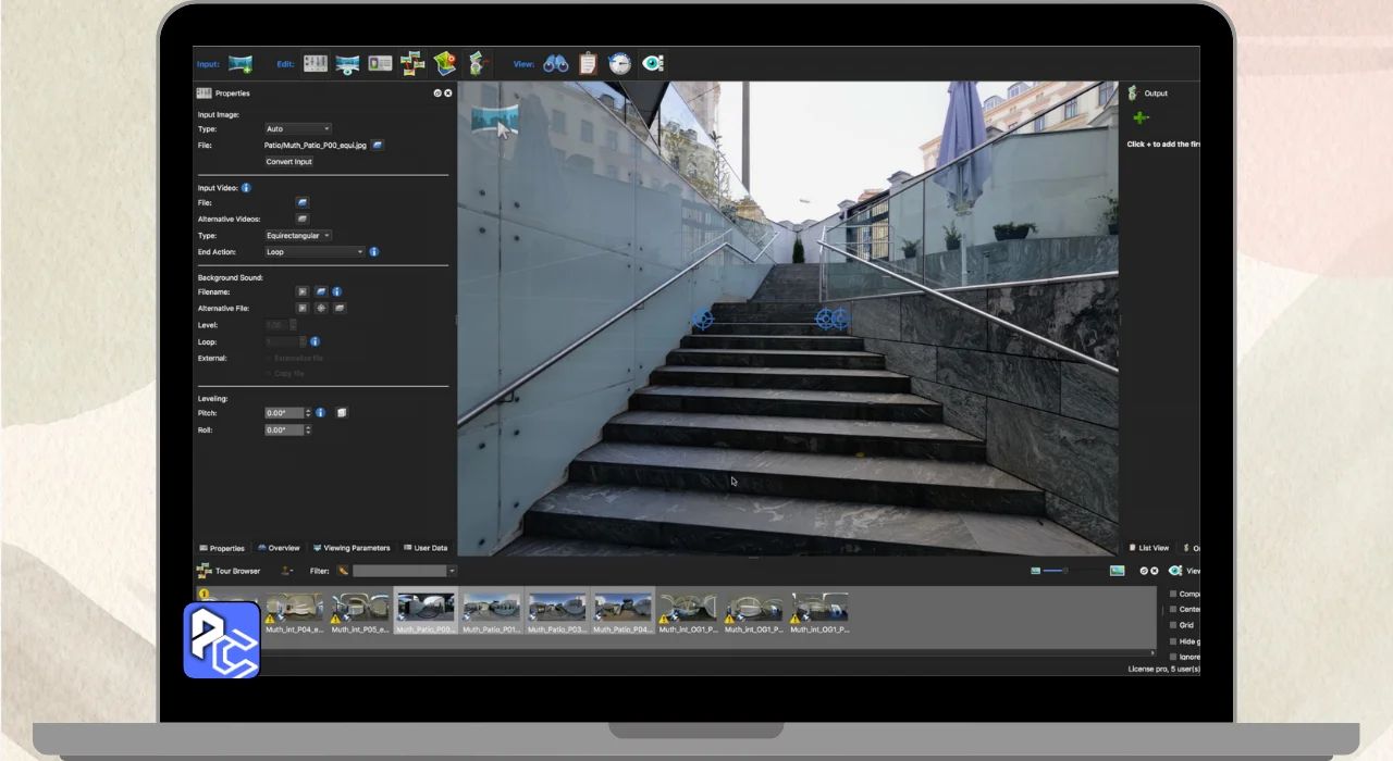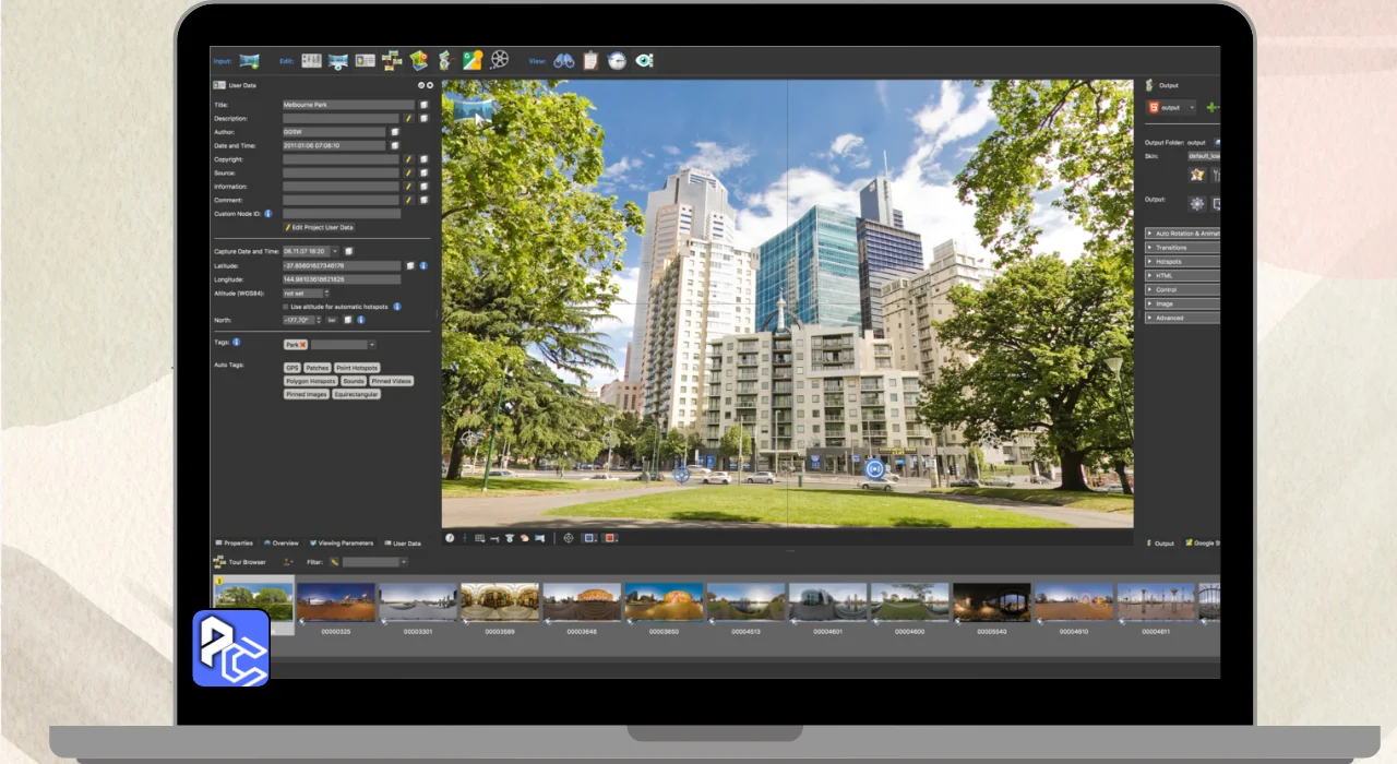 Pano2VR Pro is a software that Allows you to create Interactive virtual Tours using Panoramic photos. You can take wide pictures of places like parks or cities and link them together, so users can click to explore different scenes.