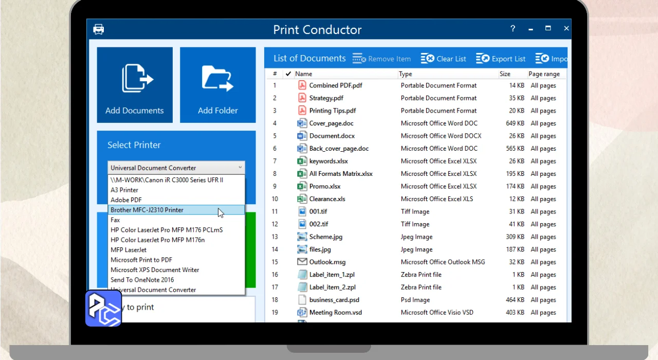 Print Conductor is a tool that Simplifies printing multiple Documents or Images at once. Instead of printing each item individually, you can use it to batch print everything together. You start by choosing your printer, then add all the files you want to print. You can drag and drop them or select a folder where they’re stored.