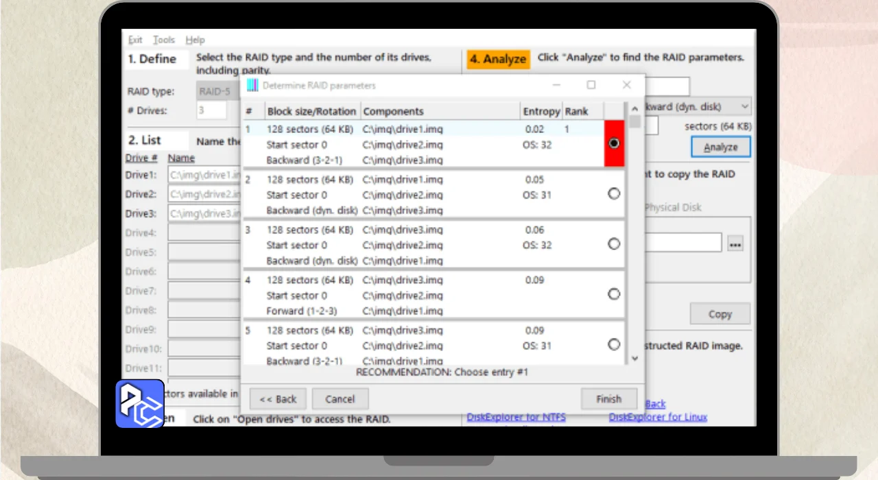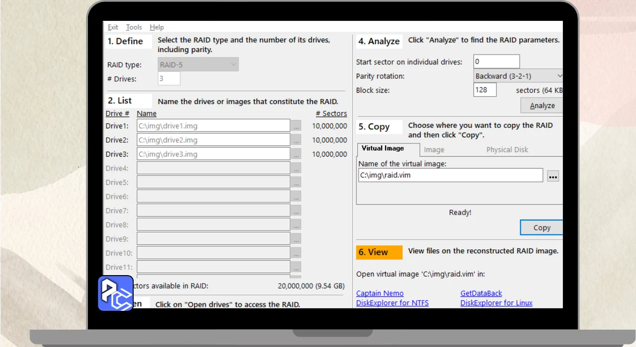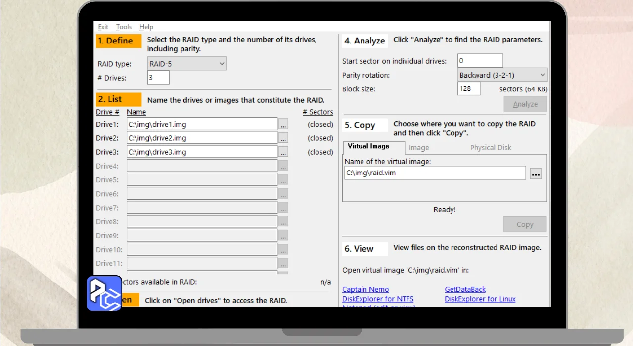 - Drive Analysis: Checks the condition of RAID drives before recovery.