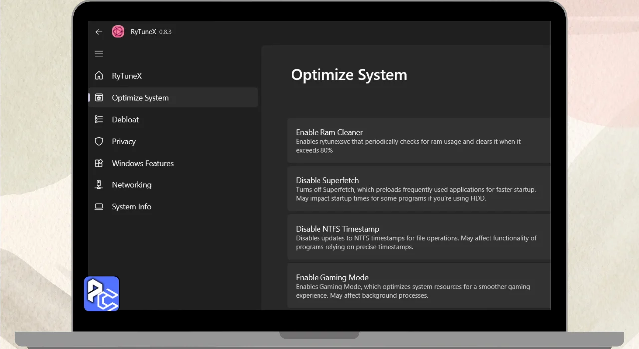 RyTuneX is a software tool that helps improve your Computer’s performance by Allowing you to adjust key settings. It Makes your PC Run Speedier By Optimizing Things Like Clock Speed and Memory Utilization, Which is Particularly Supportive For Assignments like Gaming. The interface is simple, with tabs for optimizing your system, removing unwanted apps (bloatware), and improving privacy.