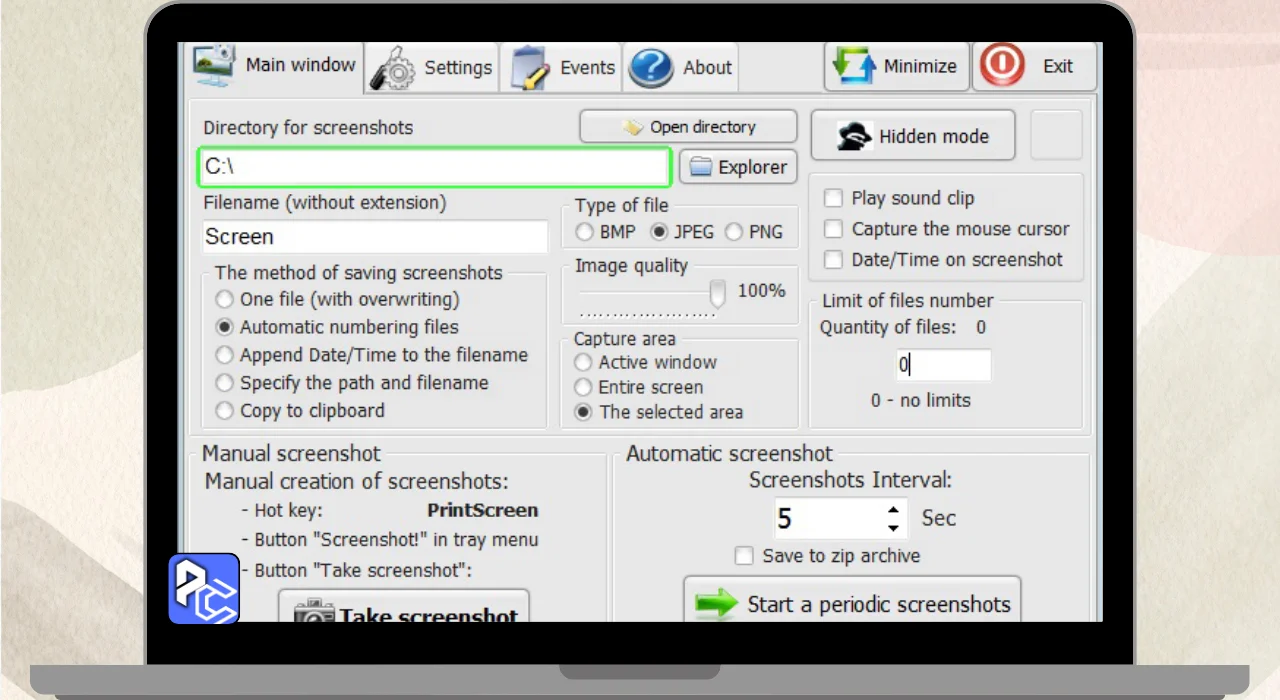 You can take screenshots in different ways: by pressing a keyboard key, clicking a button in the system tray, or using the “Take a screenshot” button. It even has a stealth mode that lets you take pictures without anyone noticing, running quietly in the background. You may also like to download: Apeaksoft Video Converter Ultimate.