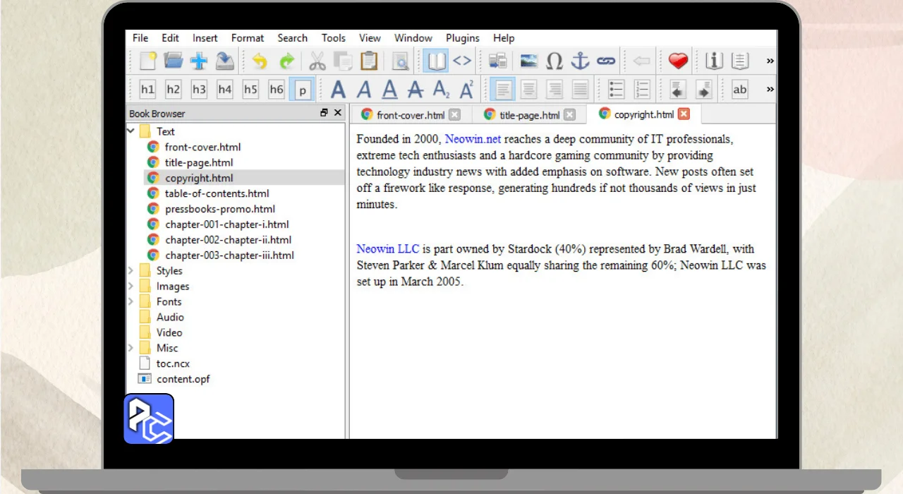 - Advanced find and replace functionality for quick text changes throughout the ebook.