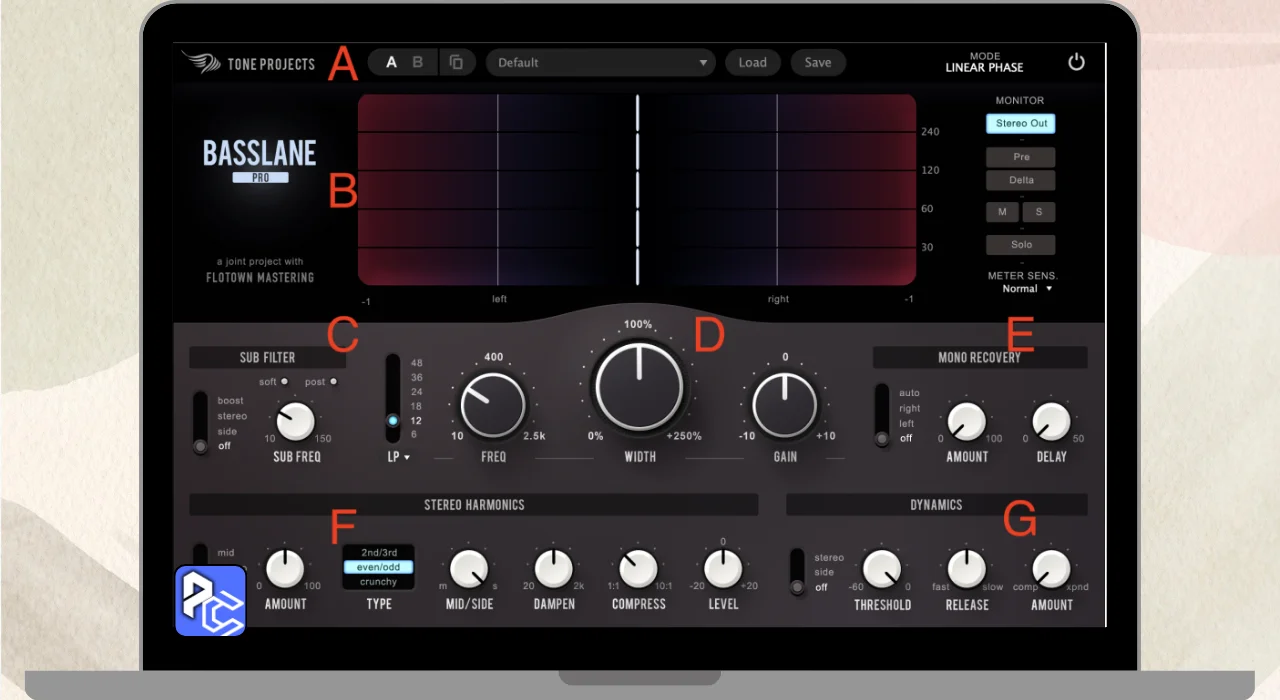 - Allows precise control over stereo width and placement of bass sounds.