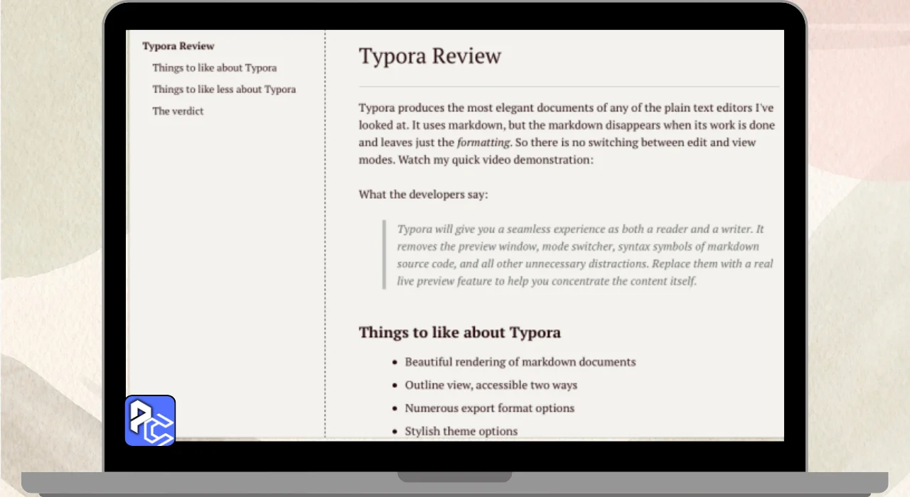 Typora is a simple yet powerful text editor that helps you organize your writing. It may look Basic at First, but it has many tools to make your work easier. For example, you can use Markdown to format your text like making words bold or italic with just a few symbols. This makes your Writing look neat and easy to read without needing extra buttons.