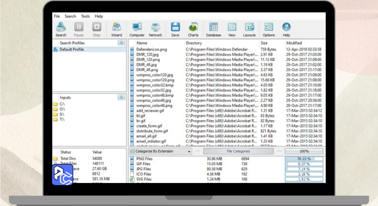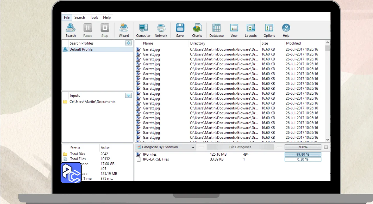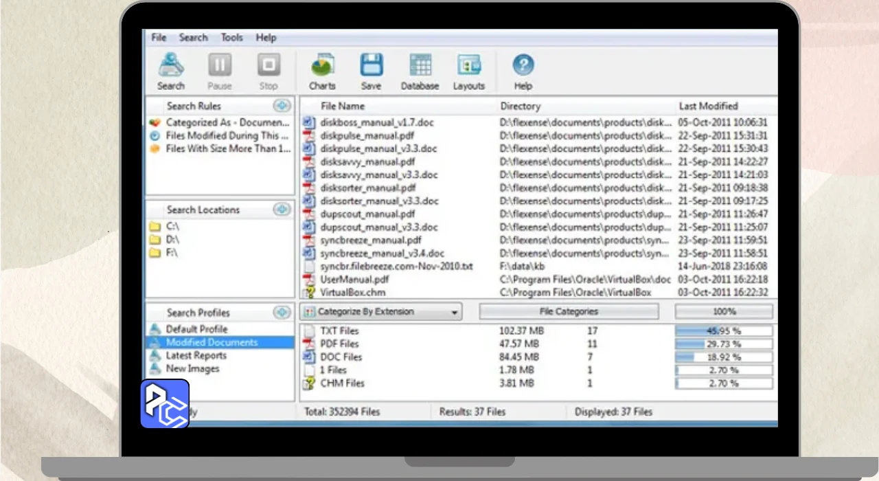 - Custom search profiles with advanced filters like file name, size, creation date, and more.