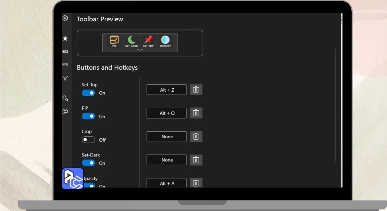 - Pin any window to stay on top of others.
